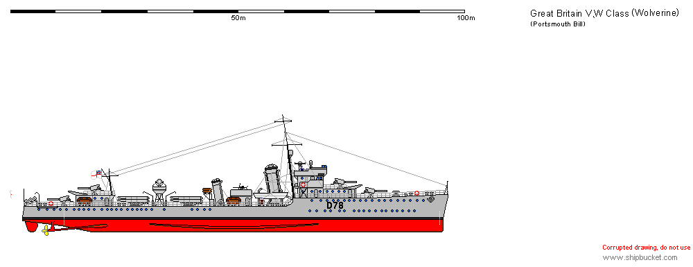 | ヴェノマウス | Venomous | G.98 | John Brown & Company, Clydebank | 1919/8/24 | 1945 | ◎1918/5/31 起工 ◎1918/12/21 ヴェノム Venomとして進水 ◎1919/4/24 ヴェノマウスと改名 ◎1919/6 艦種記号G.98を与えられる ◎1919/8/24 竣工 ◎戦間期に艦種記号D.75に改める ◎大西洋艦隊 Atlantic Fleet第2駆逐隊群 2nd Destroyer Flotillaに配属された。1919年から1920年の冬、ヴェノマウスはバルト海を数回巡航し、ラトヴィア、エストニア、フィンランドにおけるボルシェヴィキおよびドイツ軍に対するイギリス軍の作戦に参加した。1920年には、アイルランドへの銃器密輸を阻止するための哨戒活動を行い、乗組員は石炭ストライキによるイギリス経済の麻痺を防ぐ活動にも参加した ◎1923年10月8日、ヴェノマウスは地中海艦隊 Mediterranean Fleetでの任務のためチャタムにて再就役し、1929年までマルタのヴァレッタを母港として活動した。地中海航海の初めには、ギリシャとトルコの戦闘中、イギリスの権益を支援するため哨戒活動を行った。1924年11月2日、西地中海での巡航からヴァレッタへの帰路グランド・ハーバーを航行中、ヴェノマウスは誤って軽巡洋艦カリプソ Calypso(61)のモーターボートに衝突し沈没させた。モーターボートに乗っていた4人全員は駆逐艦アンパイア Umpire(H.10)のボートによって救助された ◎1925年3月までに、ヴェノマウスは地中海で第4駆逐隊群 4th Destroyer Flotillaの一員として活動していた。 1926年4月30日にChathamにて再就役し、地中海の第4駆逐隊群での任務を継続した。1928年8月21日に再就役した ◎1929 退役、スコットランドのRosythの予備役艦隊 Reserve Fleetに編入 ◎1938年10月、ナチス・ドイツとの危機の際にヴェノマウスは短期間再就役したが、戦況の悪化が収まるとすぐに予備役に戻された。1939年夏、ドイツとの緊張がふたたび高まると、ヴェノマウスはドナルド・マッキンタイア艦長 Donald Macintyreの指揮の下、再就役した。マッキンタイアは1940年1月までヴェノマウスの艦長を務め、第二次大戦で最も著名な船団護衛艦長の一人となった ◎第16駆逐隊群 16th Destroyer Flotillaに編入 ◎ヴェノマウスと駆逐艦ヴェリティは1940年5月12日にイギリス海兵隊の一団をオランダのHook of Hollandに輸送した ◎1940年5月21日に約200名のイギリス兵を乗せ、レーヨン工場から潜水艦探知装置と製造装置を積み込み、難民と貨物をイギリスへ輸送した ◎1940/5/23 ドイツ軍が立てこもるFort de la Crècheに砲撃を開始。ヴェノマウスはまた、家の庭にあるドイツ軍の軽野砲を発見し、これに砲撃 ◎1940年5月26日、ヴェノマウスはフランスのダンケルク周辺の橋頭保から連合軍兵士を撤退させる“ダイナモ作戦 Operation Dynamo”を支援する作戦を開始 ◎1940年9月13日から14日にかけての夜には、駆逐艦マルコム Malcolm(I.19)とともにブローニュ沖のドイツ軍陣地を砲撃した ◎1940年12月18日、ヴェノマウスは北アイルランドのデリーに到着し、第1護衛隊群 1st Escort Groupに加わった。HX 96船団の護衛任務中、 ◎修理が完了したヴェノマウスは、 1941年2月にデリーの第1護衛隊群に復帰し、西方接近路での船団護衛任務を継続した。 ◎修理中、ヴェノマウスは1942年2月5日から14日まで行われた軍艦週間 Warship Weekキャンペーンで、イギリスのLeicestershire州Loughboroughの民間団体に“採用”された。修理、改装、レーダー設置が完了すると、ヴェノマウスは1942年4月20日に本国艦隊 Home Fleetに加わり、北極海船団をソヴィエトへ護衛する任務に就いた ◎1943年8月に“ハスキー作戦”から解放されたヴェノマウスは、 1943年10月まで地中海で船団護衛に従事し、そののちイギリスに帰還して改修を受けた。そののち、同年残りの期間はイギリスのFalmouth造船所に留まった ◎ヴェノマウスは1944年前半は就役せず、標的艦への改修のため退役した。標的艦は対艦攻撃を行う航空機搭乗員の訓練に使用され、母艦としても任務に就いた。1944年8月、標的艦として再就役し、1945年5月初旬のドイツ降伏までこの任務を続けた。ドイツ降伏後、ヴェノマウスはヨーロッパの再占領作戦において連合軍を支援し、1945年5月14日には嚮導駆逐艦ヴァロラス Valorous(L.00)とともに、ほかの連合軍艦の到着に先立ちノルウェーのKristiansund南部で掃海活動を行う掃海艇の護衛を行った ◎1945年5月初旬のドイツの降伏後、ヴェノマウスは退役し予備役となった。1945年10月までに、ヴェノマウスはイギリス海軍の現役艦艇リストに掲載されなくなった。そののち、廃棄リストに掲載され、1947年3月4日にFife州チャールズタウンのMetal Industriesにスクラップとして売却された。ヴェノマウスは1947年7月もしくは8月(資料により異なる)に解体され、1948年にスクラップとなった |