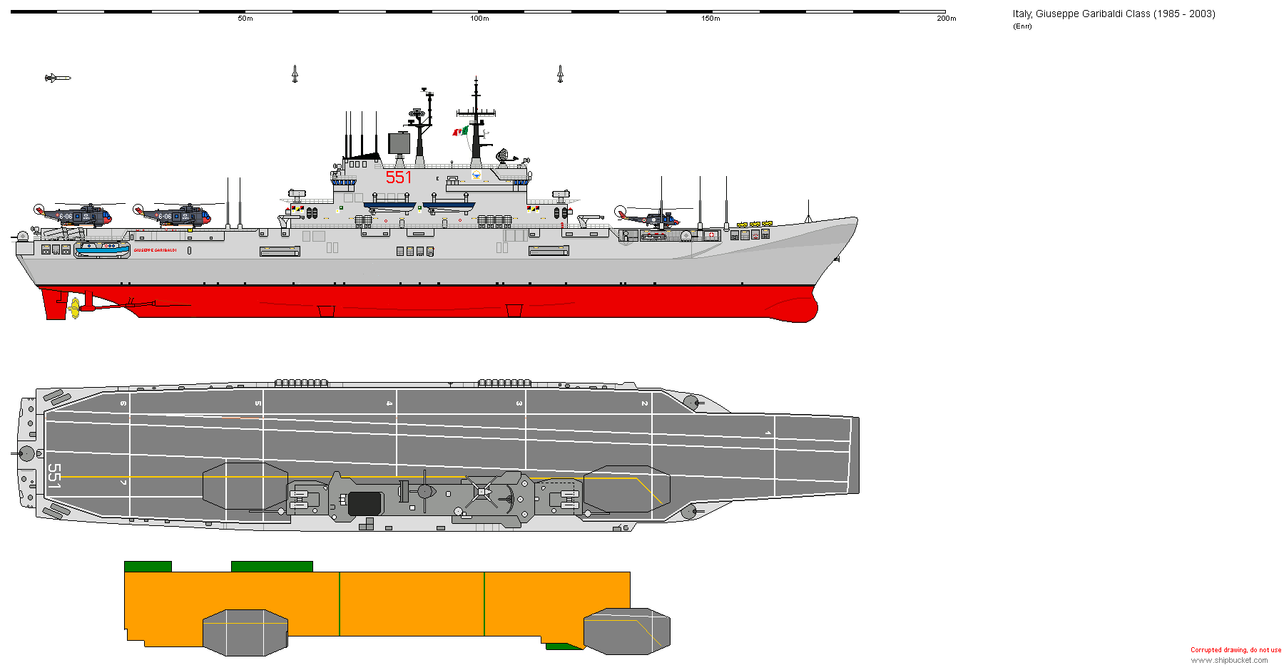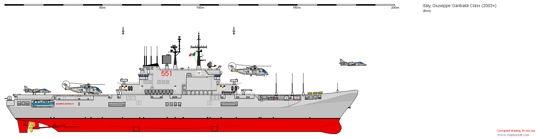 ジュゼッペ・ガリバルディ | Giuseppe Garibaldi | C 551 | Fincantieri, Monafalcone Shipyard, Monfalcone (Gorizia) | 1985/9/30 | 2024/10/1 | ◎1981/3/26 起工 ◎1983/6/11 進水 ◎1984/12/3 公試 ◎1994 ソマリアでの人道的介入作戦である“希望回復作戦 Operation Restore Hope”に参加していたイタリア陸軍部隊の撤退支援のために海軍が出動、本艦も加わる ◎1999 “アライド・フォース作戦 Operation Allied Force”に参加 ◎2001/12 “不朽の自由作戦 Operation Enduring Freedom”に参加 ◎2009年より本艦は大規模修理に入った ◎2011 “ユニファイド・プロテクター作戦 Operation Unified Protector”に参加 ◎2013年秋 再度の大規模修理と寿命延長改修 ◎2024/10 予備役編入 ◎2025/8/29 インドネシア政府において、本艦の取得について外貨借款で$450,000,000を調達する計画が承認 |